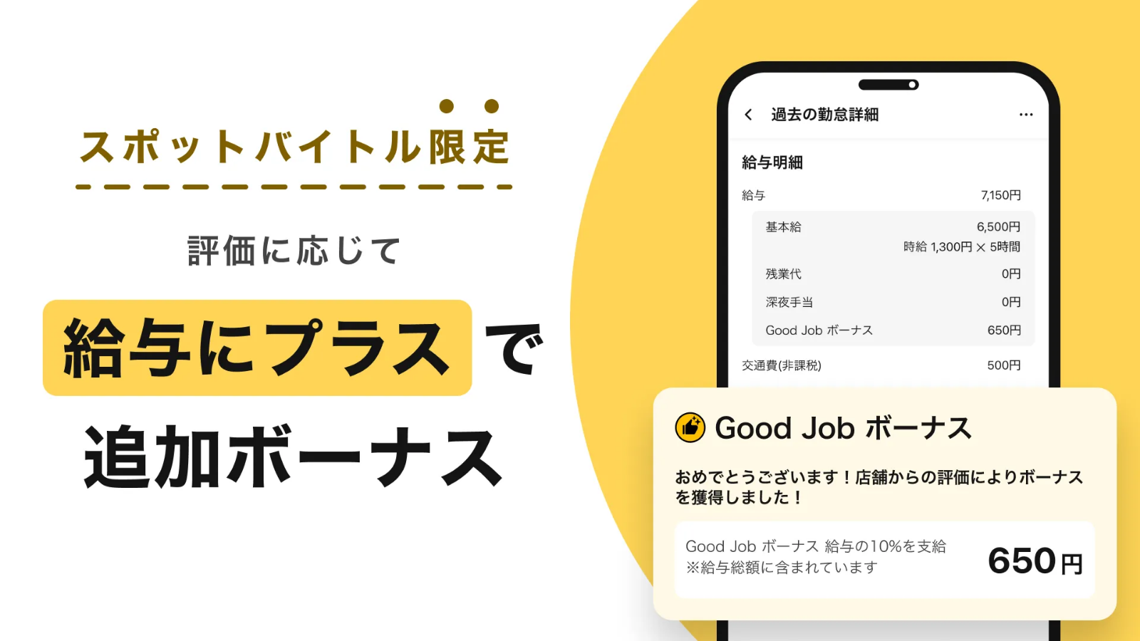 スポットバイトルは、履歴書や面接なしで短時間から単発で働くことができるバイトアプリです。